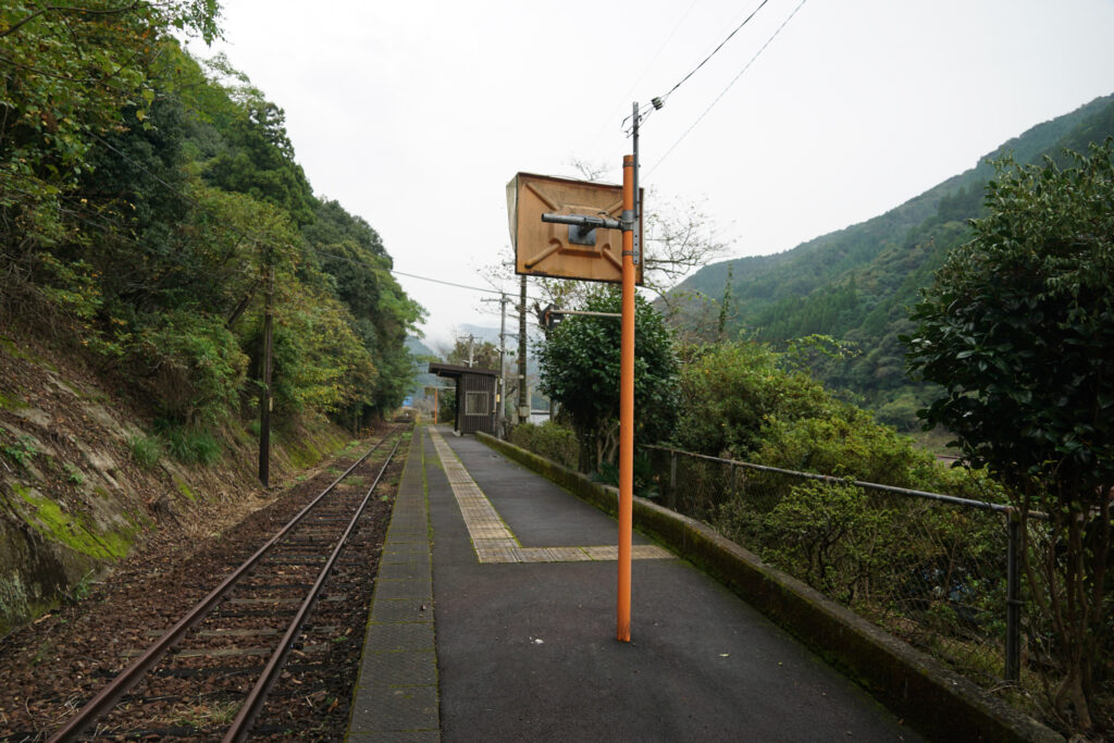 ちなみに向こうに見える橋は東郷橋で、橋を渡った先に集落がありますが、駅のある側の背後はひたすら山です。